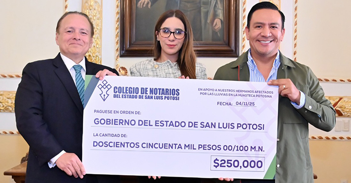 El Colegio de Notarios del Estado de San Luis Potosí se sumó a la campaña Todos Unidos por la Huasteca, para seguir brindando apoyo a las familias mediante acciones de atención y reconstrucción en las comunidades afectadas por las lluvias.