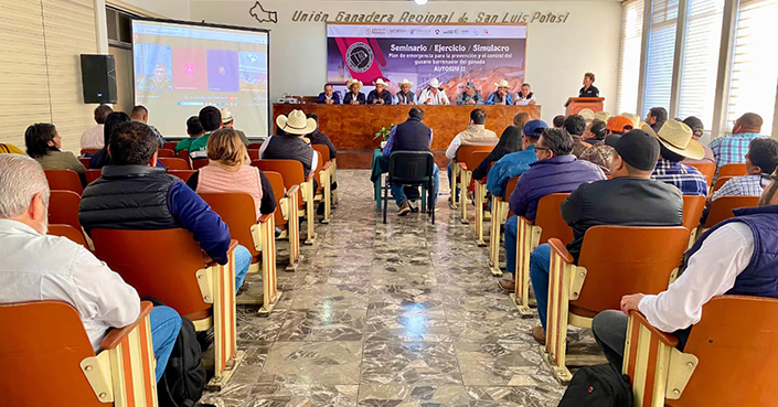En cumplimiento a la instrucción del Gobernador Ricardo Gallardo Cardona, de brindar apoyo sin límites al campo, el simulacro fue encabezado por el personal de la Dirección de Sanidad Animal, e incluye ejercicios de detección, contención y erradicación simulada de brotes, coordinación interinstitucional y protocolos de acción inmediata para garantizar la trazabilidad del ganado, y lograr una comunicación oportuna entre las dependencias y organismos del sector pecuario.