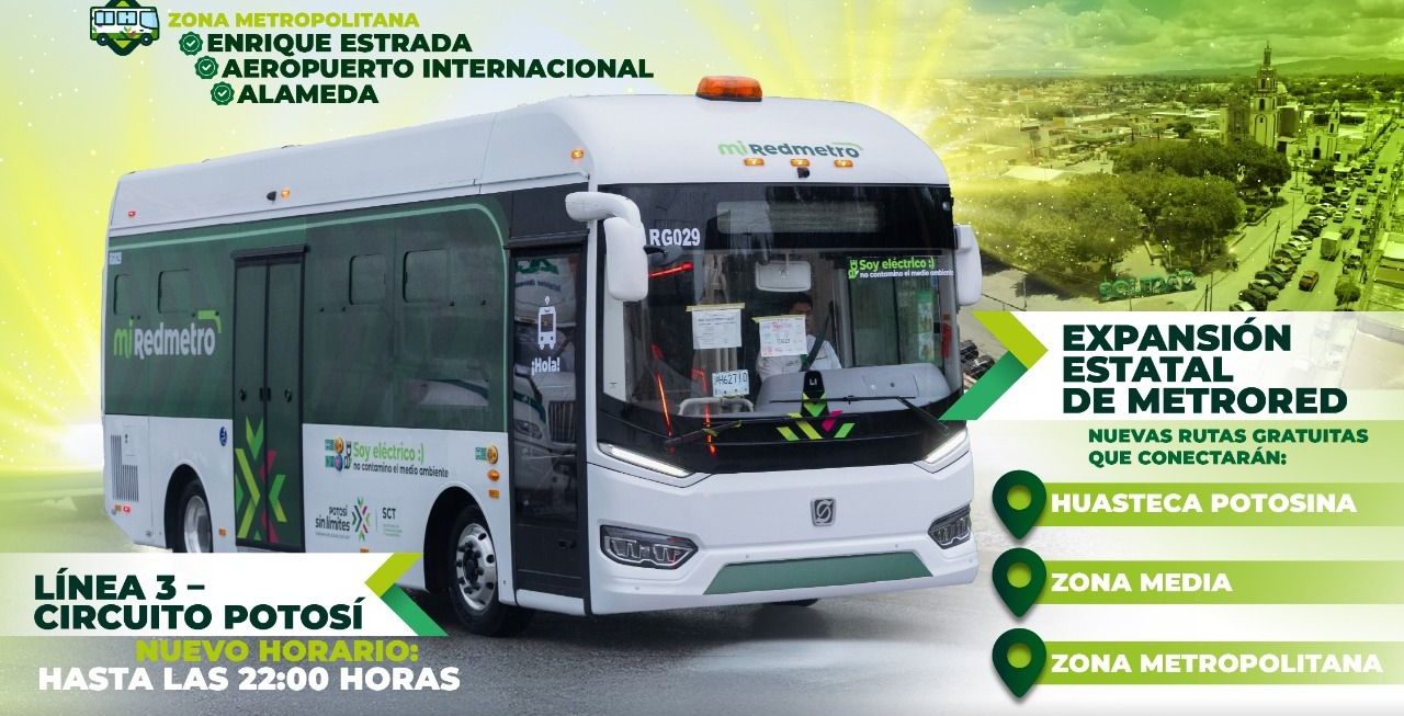 Como parte de este compromiso de mejora permanente, Ricardo Gallardo informó que la Línea 3 de MetroRed – Circuito Potosí en la zona Metropolitana, ahora ofrecerá servicio hasta las 22:00 horas, con lo que las familias y las personas trabajadoras que concluyen su jornada en horarios nocturnos podrán disfrutar de una movilidad segura y eficiente.